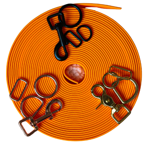Wodoodporna linka treningowa z oryginalnego BioThane w długościach 5–15 metrów. Ręczna produkcja w Polsce, bogata gama kolorów i pełna konfiguracja zakończeń.