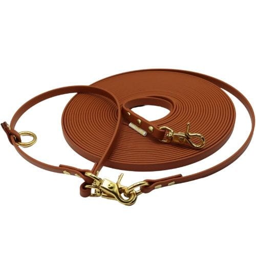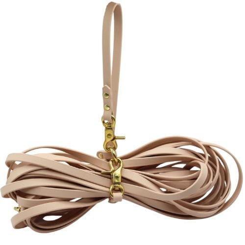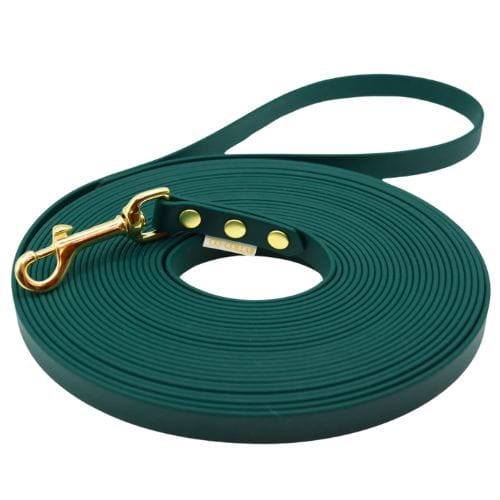 Linka treningowa z oryginalnego BioThane – wodoodporna, elegancka i przyjemna w dotyku. Dostępna w długościach 5, 7, 10, 12 i 15 metrów z pełną konfiguracją zakończeń i karabińczyków.