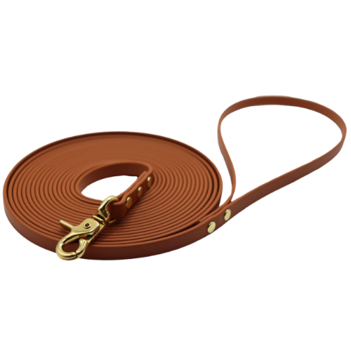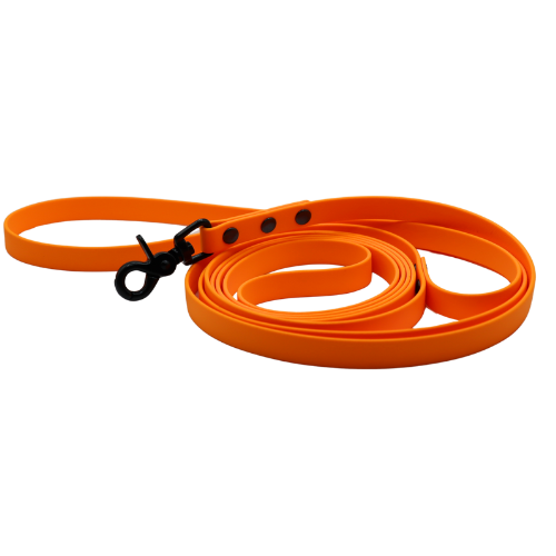 Smycz z taśmy wodoodpornej BioThane lub TPU z szerokim, solidnym karabińczykiem. TPU jest sztywniejsze i wytrzymalsze od BioThane – idealne dla silnych psów które szarpią.