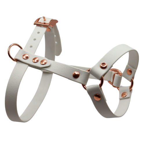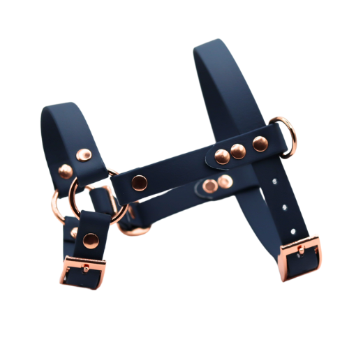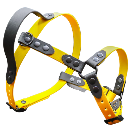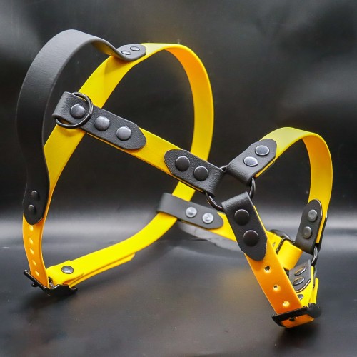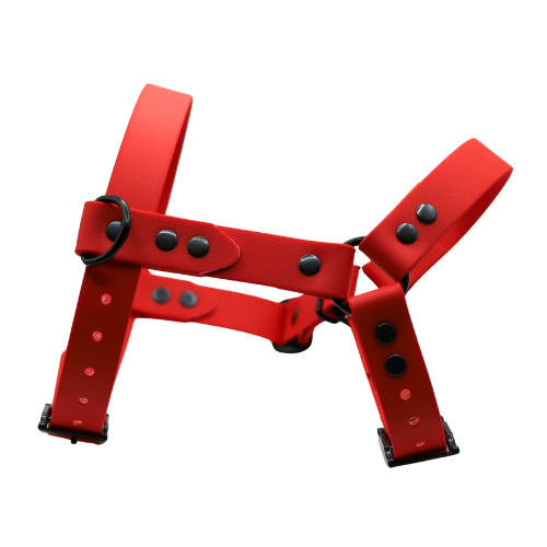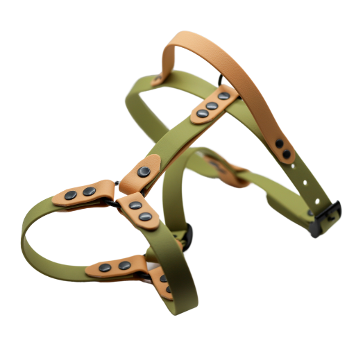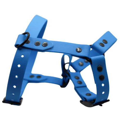 Szelki Guard z taśmy TPU z rozpinaną obręczą barkową – wytrzymałe, wodoodporne, bez przekładania przez głowę. Ręczna produkcja w Polsce.